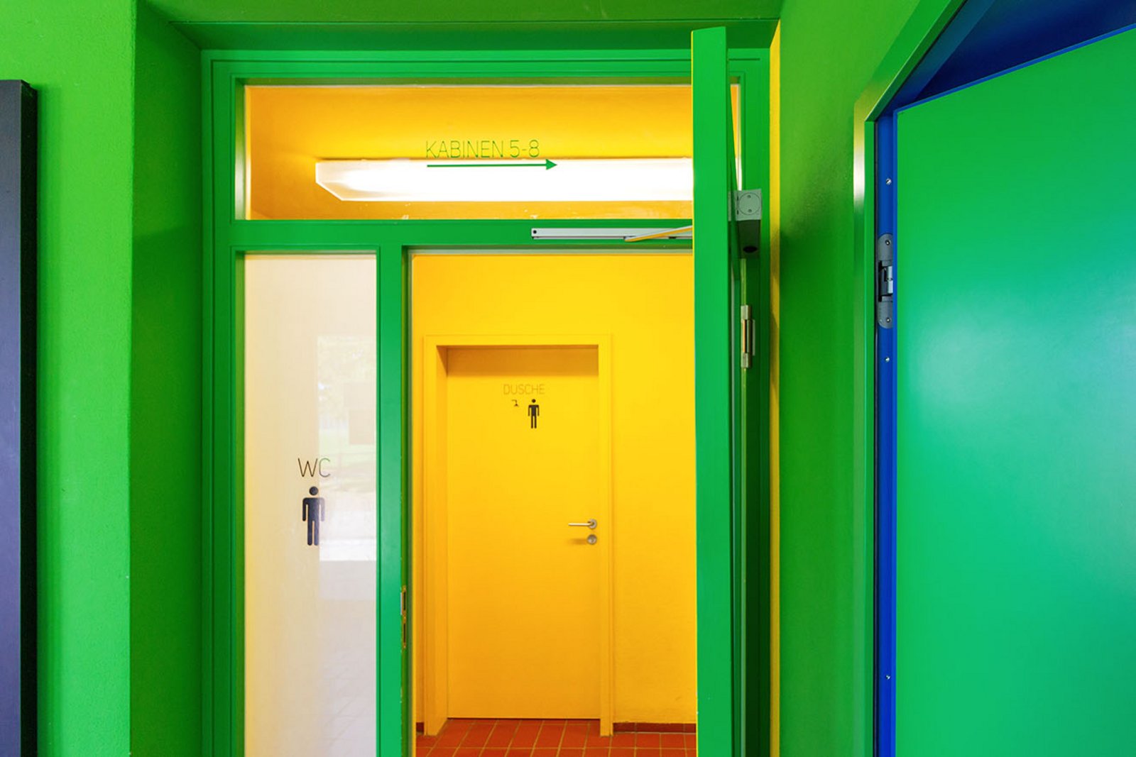 Um eine zukünftige Schimmelbildung zu vermeiden, werden die Duschen und Umkleiden mit einer Lüftungsanlage ausgestattet. Die Schadstoffsanierung wird notwendig im Bereich der Schimmelsanierung, Asbestsanierung (kleiner Anteil) und auch der KMF Sanierung.