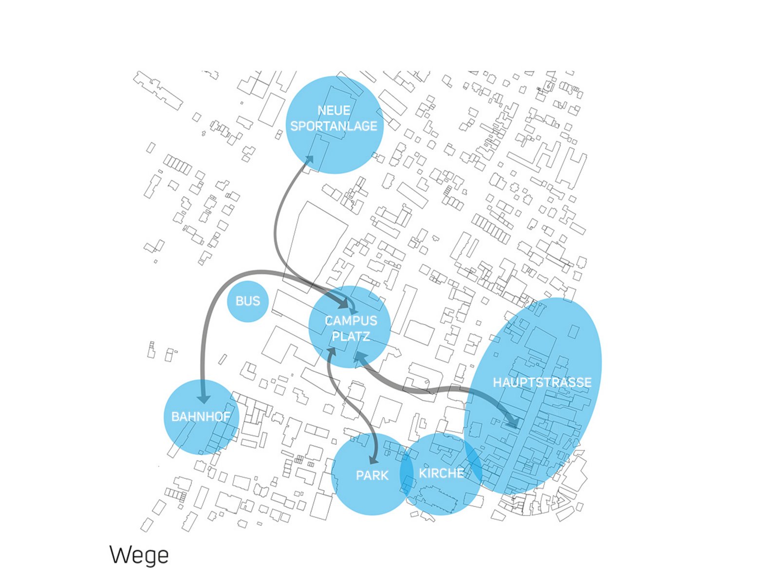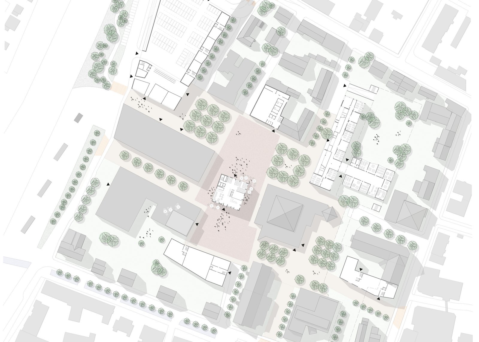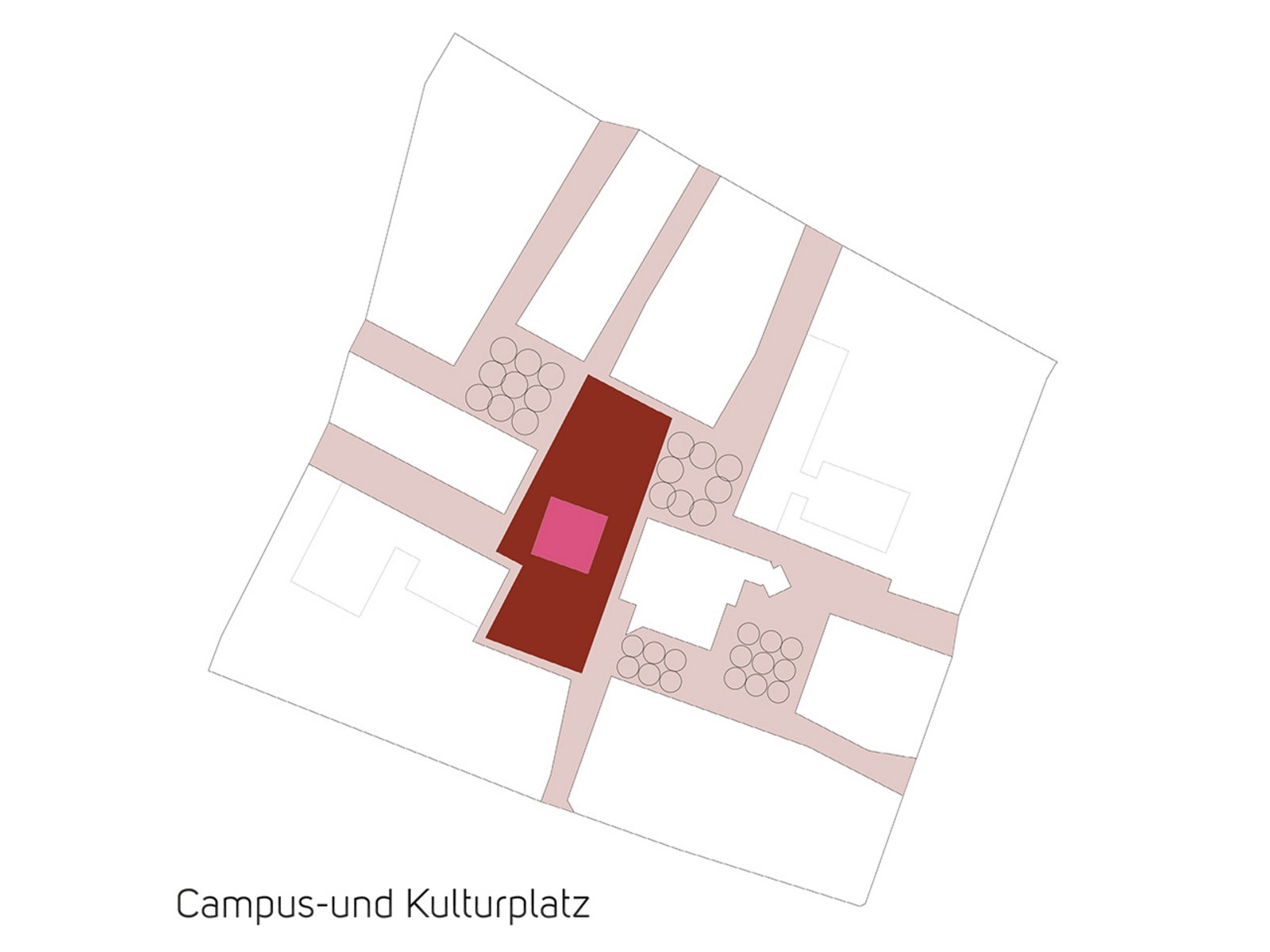 Der städtebauliche Entwurfsansatz ist, die Neuordnung der vielen einzelnen Plätze zu einem gesamten Platzkörper - dem Campusplatz